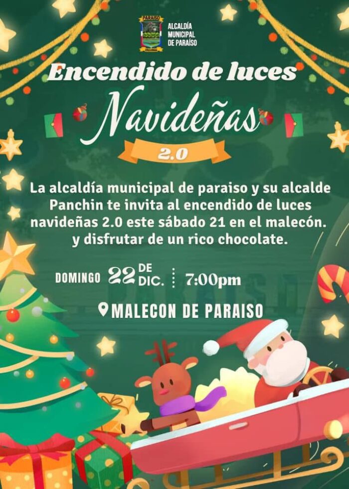 📆 Te esperamos mañana, domingo 22 de diciembre, a las 7:00 PM en el Malecón de Paraíso para disfrutar juntos de esta hermosa tradición y un delicioso chocolate caliente. ☕✨