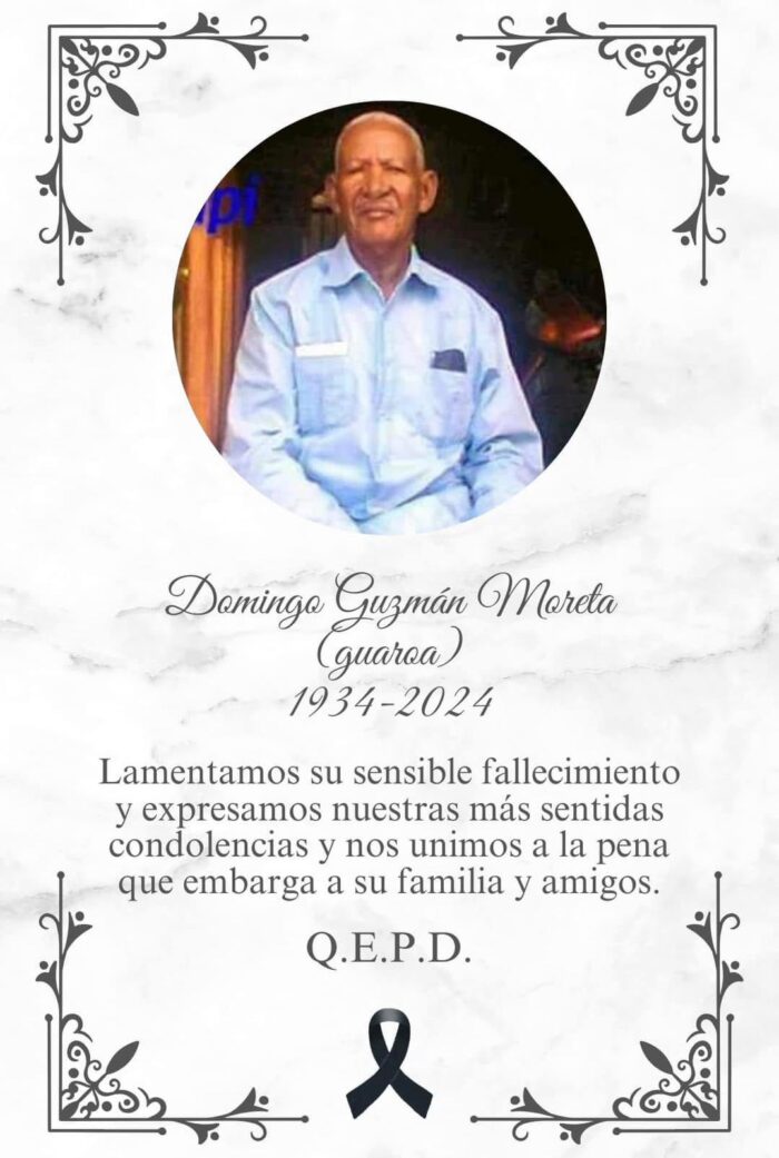 Lamentamos profundamente la partida de Domingo Guzmán Moreta (Guaroa) un querido municipe de Paraíso, quien dedicó su vida al servicio municipal. A lo largo de sus 89 años, dejó una huella imborrable en nuestra comunidad, siendo un ejemplo de compromiso y dedicación. Su legado vivirá en los corazones de quienes tuvieron el privilegio de conocerlo y trabajar a su lado. En estos momentos de dolor, enviamos nuestras más sinceras condolencias a su familia y amigos. Que encuentren consuelo en los recuerdos y en el impacto positivo que Guaroa dejó en todos nosotros. Descanse en paz. 🙏🏼 #alcaldiaparaíso
