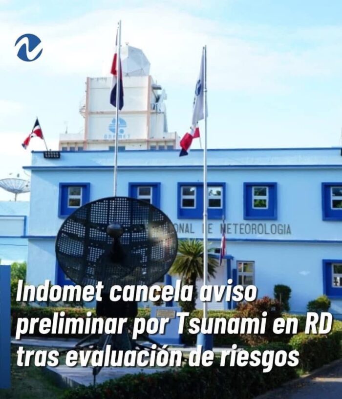 El Instituto Dominicano de Meteorología (INDOMET) ha cancelado el aviso preliminar por tsunami para la República Dominicana. Luego de evaluar las alertas emitidas por el Centro de Alerta de Tsunamis del Pacífico, se determinó que el mayor impacto del fenómeno se espera en otras naciones, como Cuba, Islas Caimán y Honduras.