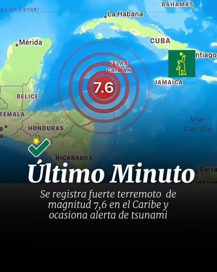 La Oficina Nacional de Meteorología (ONAMET) ha emitido un Aviso por Tsunami para toda la costa de la República Dominicana, tras un sismo de magnitud 7.6 ocurrido esta noche al norte de Honduras.