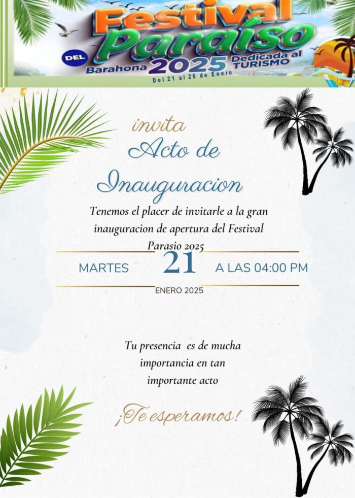 El Ayuntamiento de Paraíso invita a toda nuestra comunidad al Acto de Inauguración del Festival Paraíso 2025, dedicado al turismo.