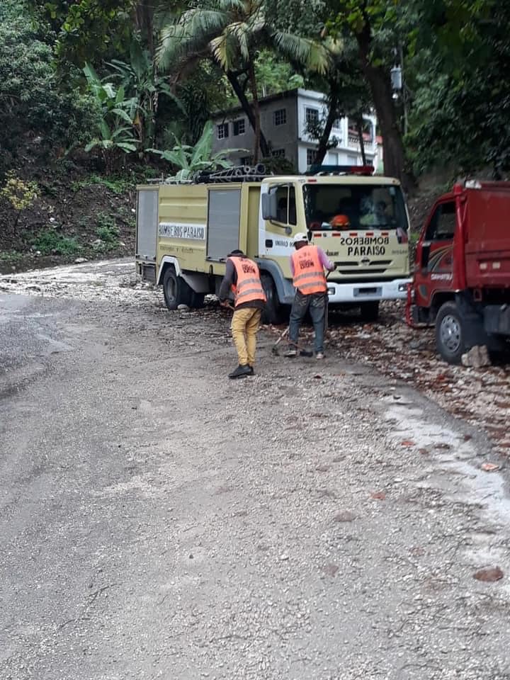 Retiro de escombros causados por las fuertes lluvias de la Onda tropical Fred en la carretera Paraíso-San Rafael