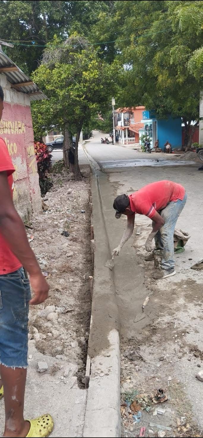 El Ayuntamiento de Paraíso ejecuta trabajos de remozamiento de aceras, contenes y badenes en el sector El Pley, mejorando el desagüe pluvial y las condiciones de acceso en la zona.👷♂️🚧